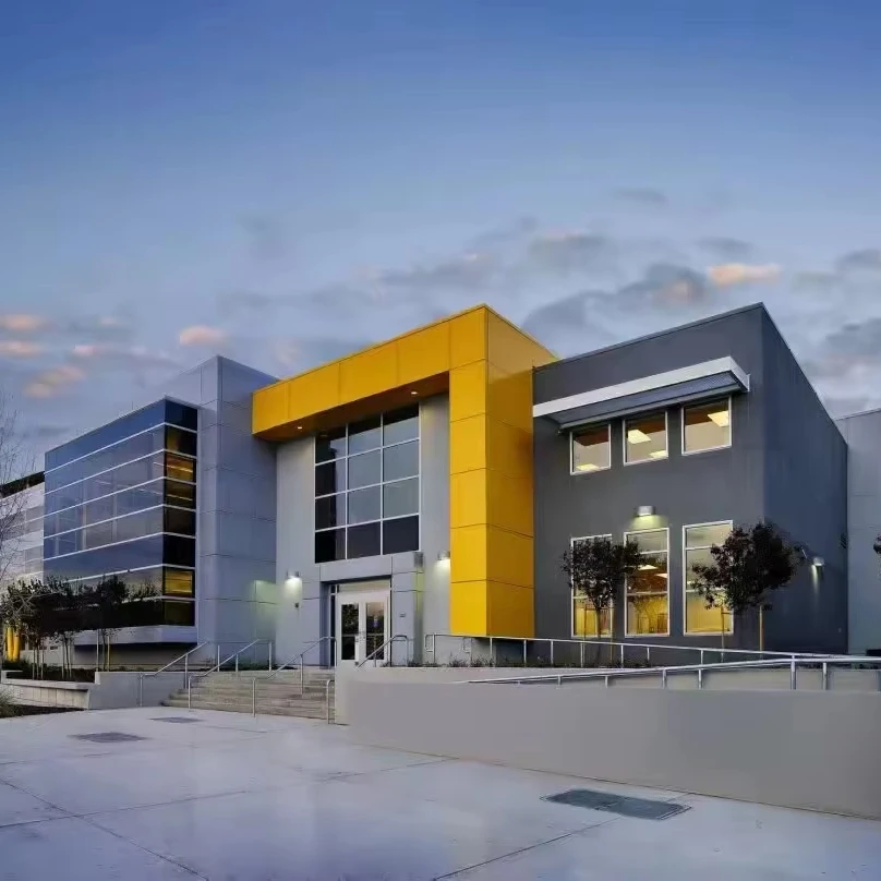 Современное предварительно спроектированное двухэтажное стальное здание для стеклянной навесной стены в выставочных залах офисных торговых центров