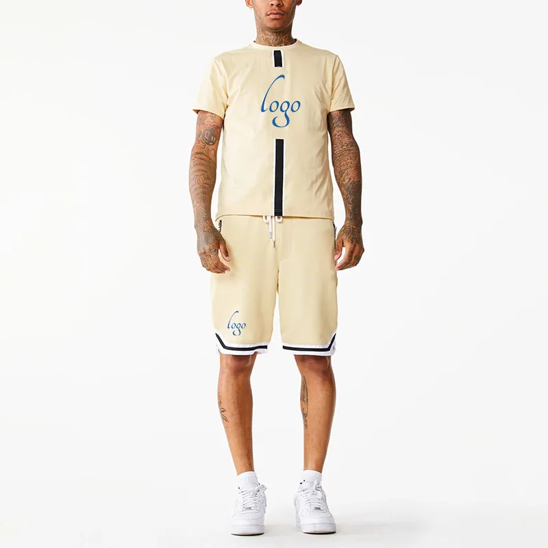 Летний мужской спортивный костюм комплект из 2 предметов футболка с коротким рукавом и длинные брюки повседневные Костюмы принтом мужская одежда