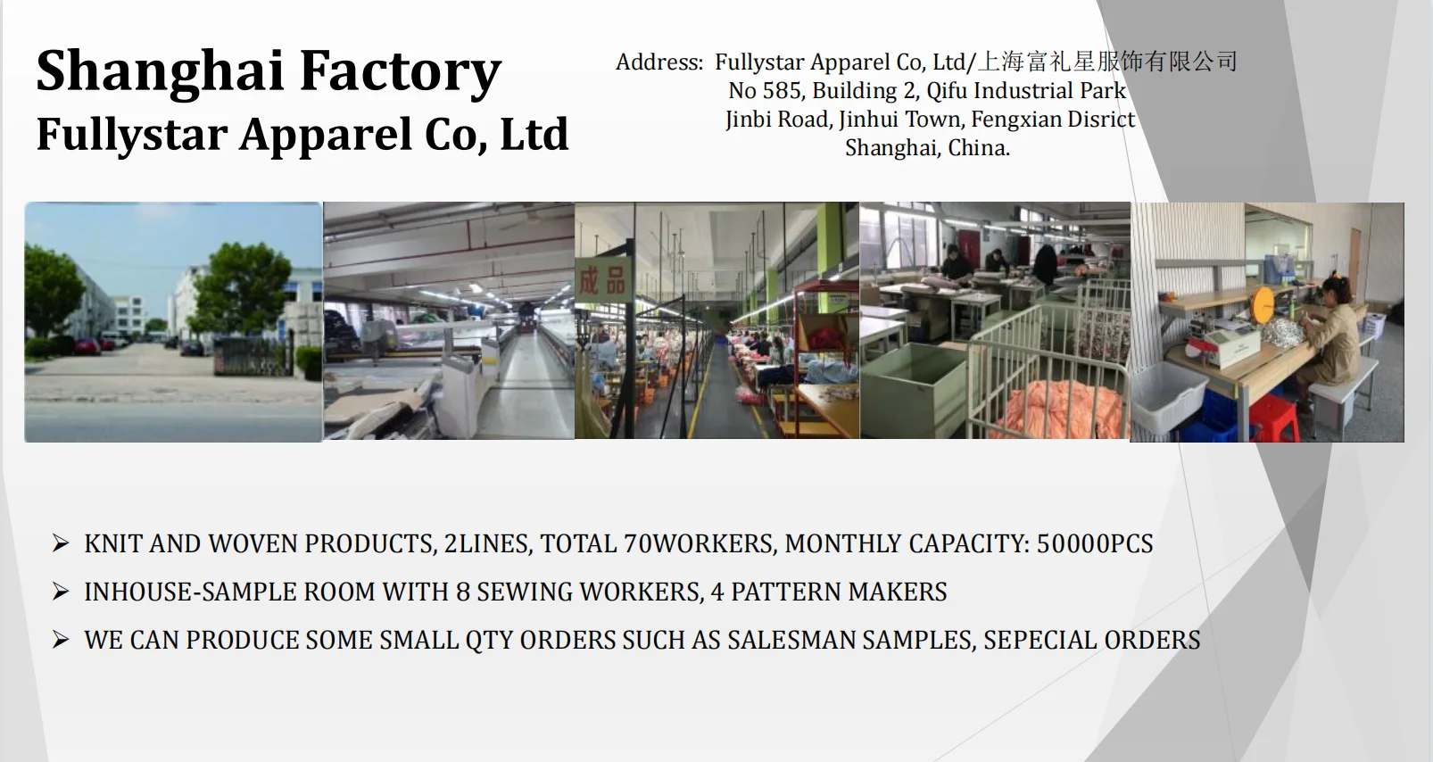 Every season, we would make salesman samples of over 200styles for our customers. For more details, you can visit our website. If you come to Shanghai, please let us know. We welcome you to visit our office.