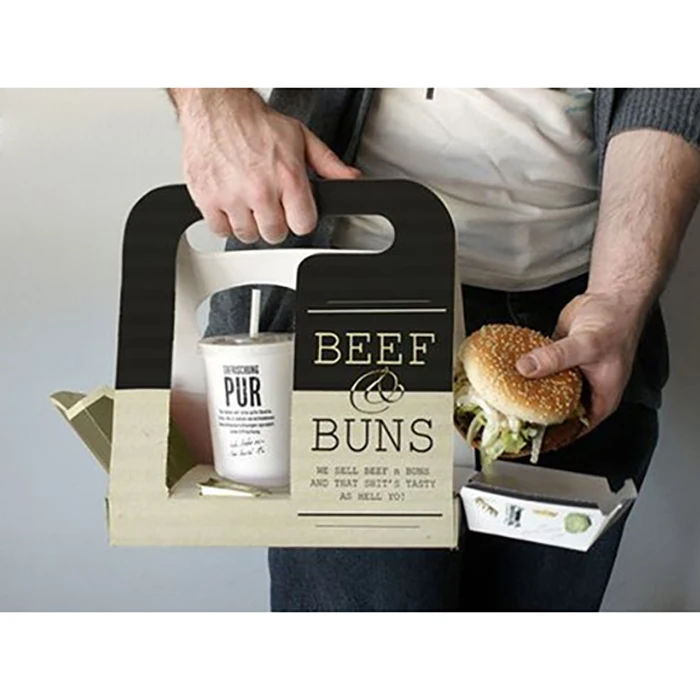 Изготовленный на заказ логотип коробка для еды бургеров подстаканник холодных напитков упаковка гамбургеров вынос бумажная быстрого питания с ручкой 1,13 ₽