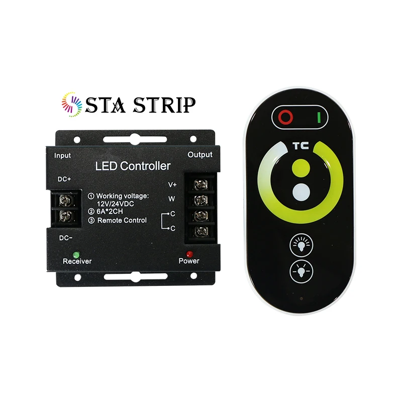 RF Single Color Strip Light 1 Channel 12V-24V PWM Dimming Aluminum Shell Single Color 36A RF 24 Keys LED Dimmer switch