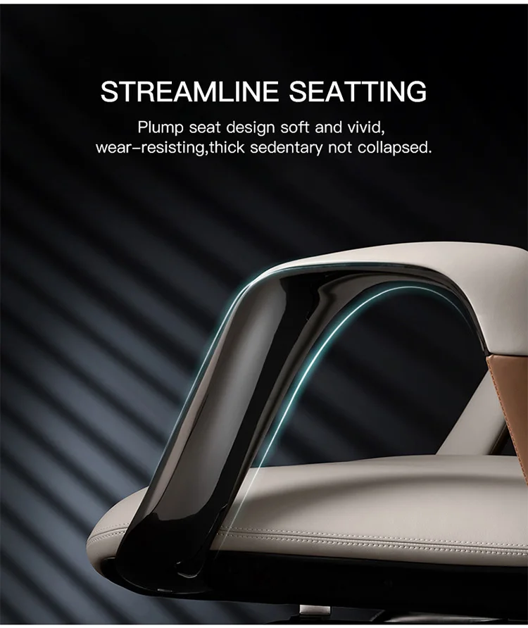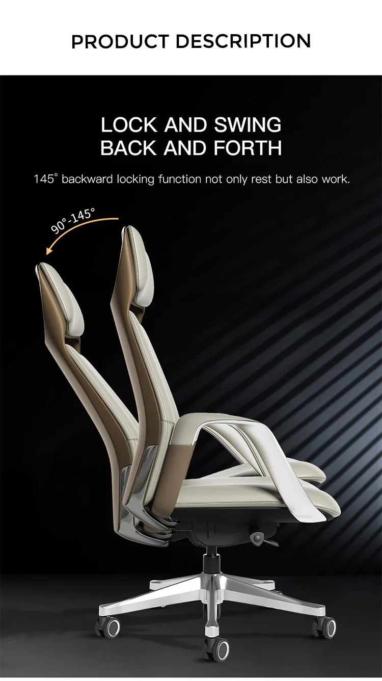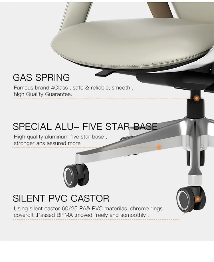 Describe | 1. Headrest: High density molded foam + PP decoration + cow leather finish. 2. Backrest: High density molded foam + PP decoration + cow leather finish, high-quality ABS black decorative parts; 3. Armrest: Aluminium Frame with high density foam + cow leather surface. 4. Seat: PP+GF shell support, molded foam + cow leather finish. 5. mechanism: 3.0mm thickness 3 positions metal mechanism with sliding 50mm 6. Gas lift:Xieqiang class 4 gas lift 7. Feet: Aluminium base with Silence PA+PVC Chromed decro casters. |