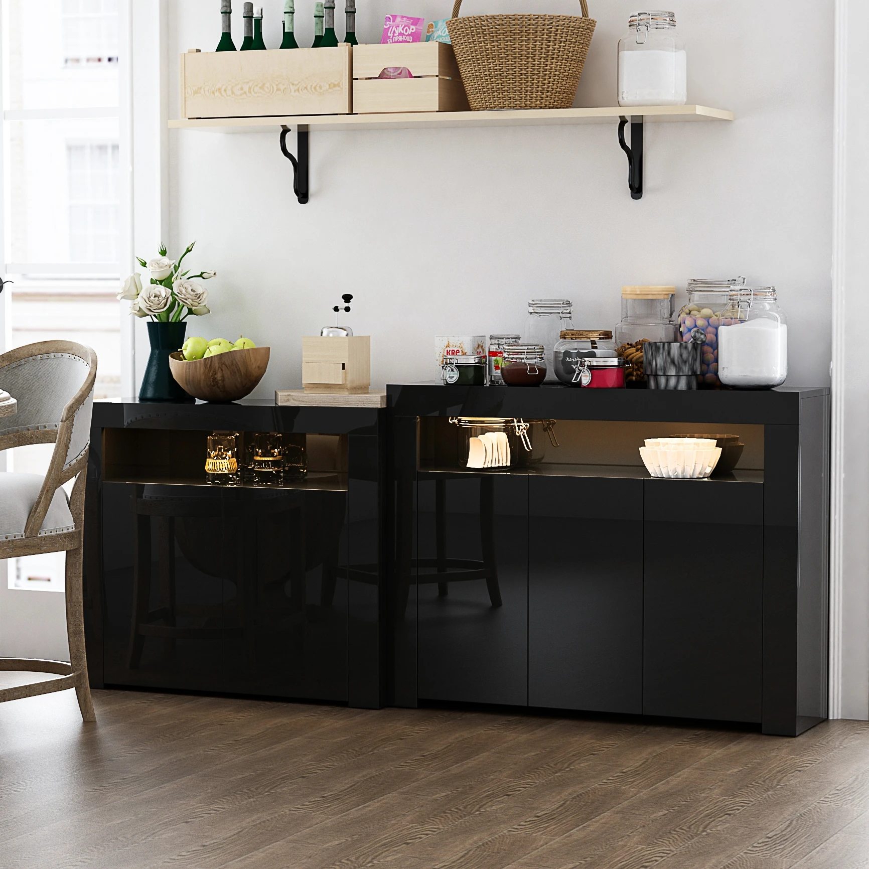 Кухонный шкаф для буфета серверный стол с 2 дверями и открытой верхней полкой Глянцевый светодиодный 39,90-44,80 $