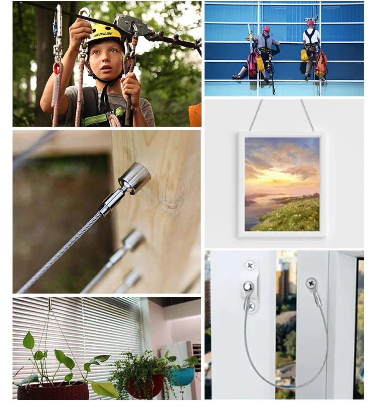 Application | Safety rope steel wire rope for locking safety luggage of outdoor sports bicycle, Hanging pictures on the wall, construction fence, climbing safety rope, etc. | |
