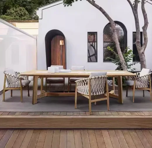Открытый Настольный стул садовый стол набор для виллы Тиковый на открытом воздухе водонепроницаемый открытый сада терраса ротанга досуг