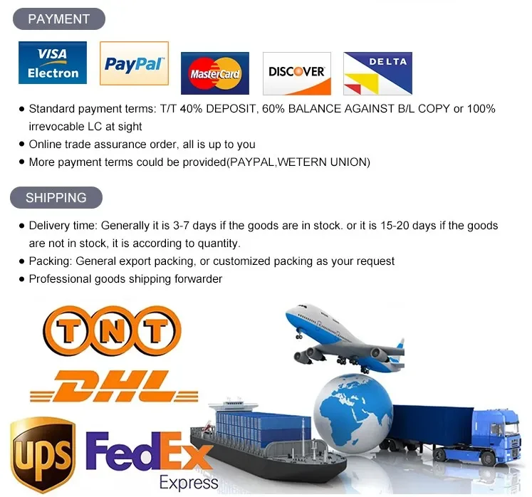 5. what services can we provide? Accepted Delivery Terms: FOB,EXW,DDP, CIF, CFR ,DAP; Accepted Payment Currency:USD; Accepted Payment Type: T/T,Credit Card,PayPal,Western Union; Language Spoken:English