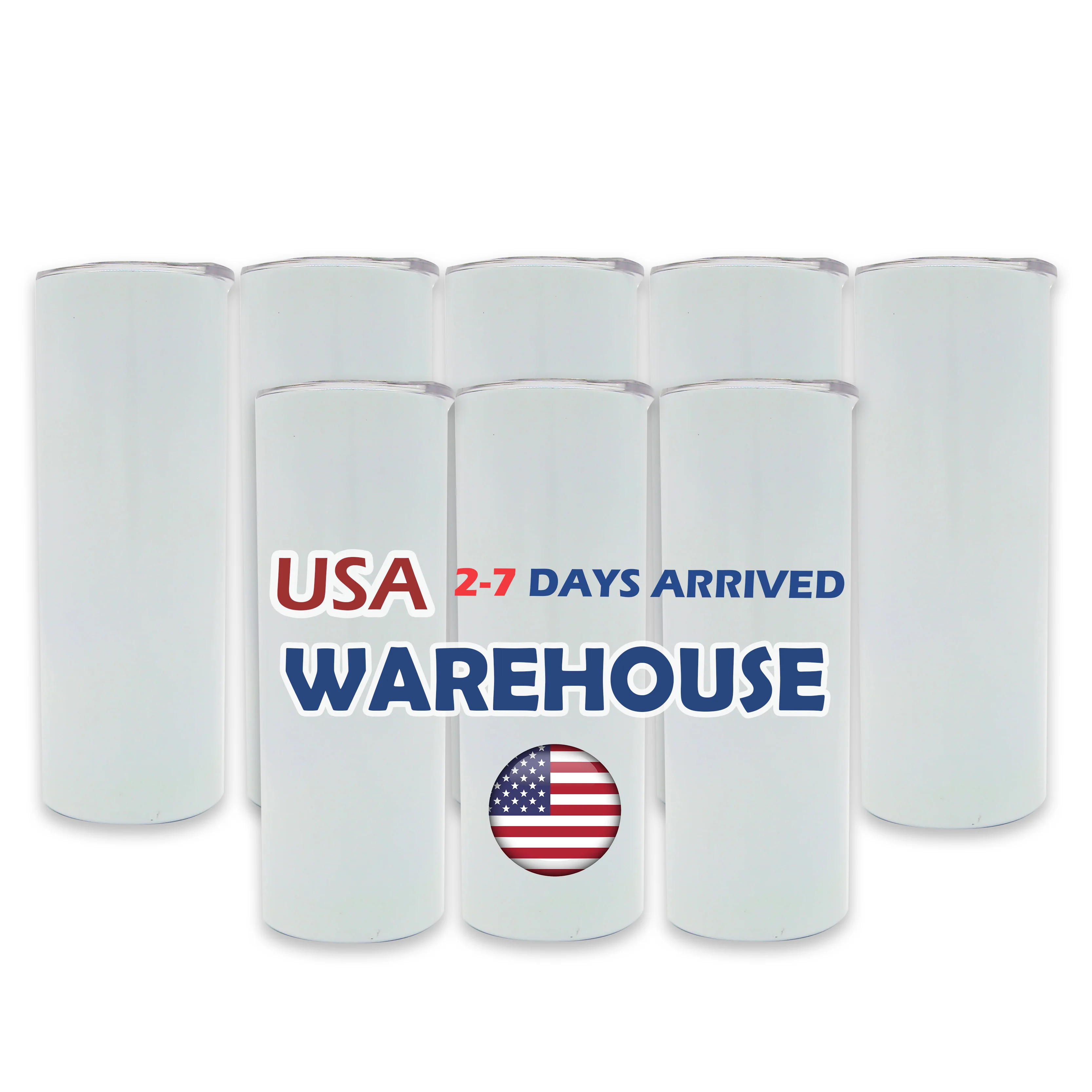Белые сублимационные заготовки для склада в США 20 унций 30 из нержавеющей стали с двойными стенками тонкий прямой сублимационный стакан крышкой