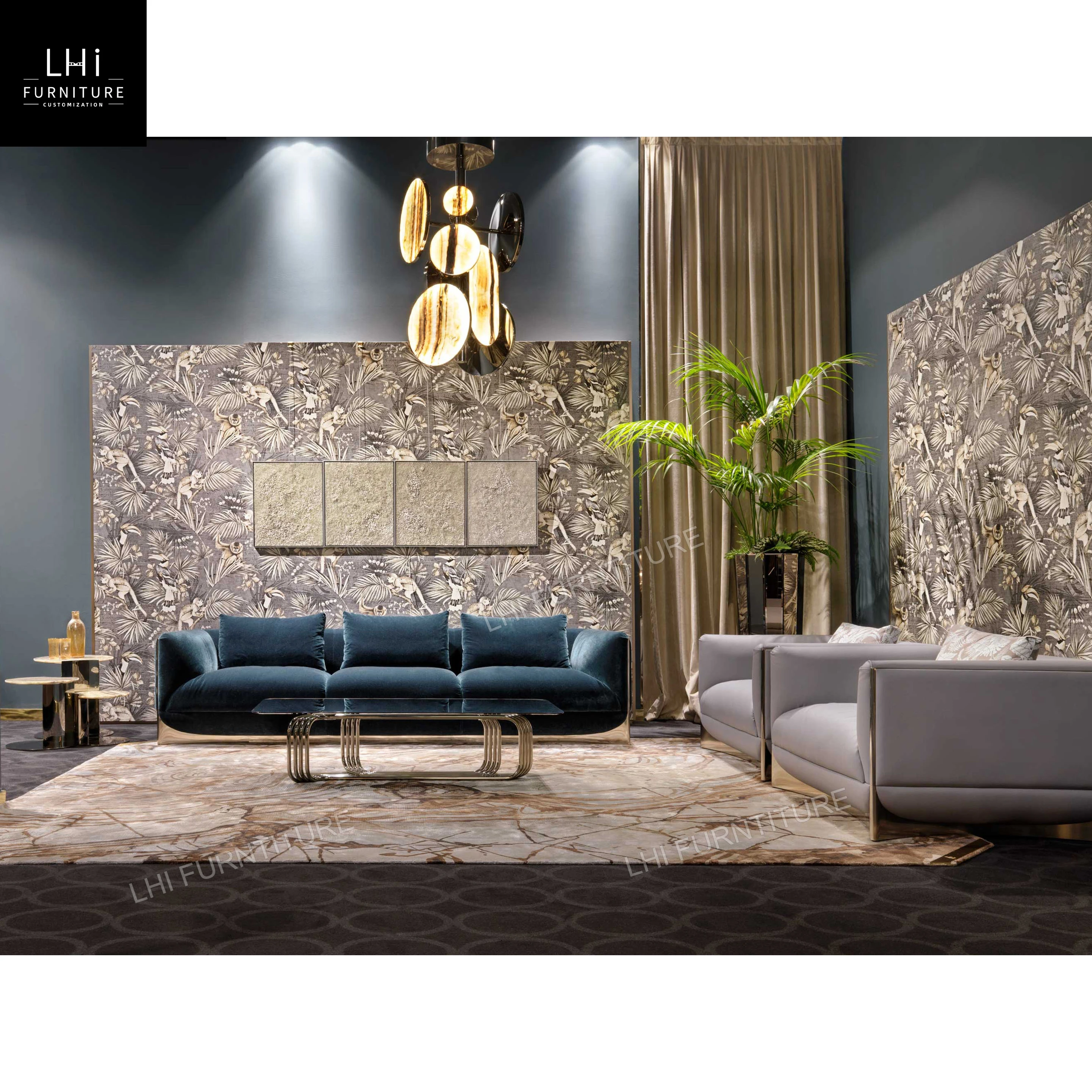 Обивка в европейском стиле 4 места Современная серая ткань секционный диван комплект дивана для гостиной с