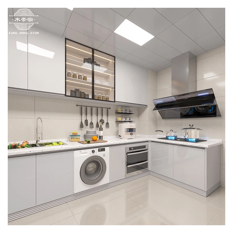Изготовленные на заказ белые кухонные шкафы для квартир современные деревянные полный комплект встроенная кухня с производителями шкафов стирки
