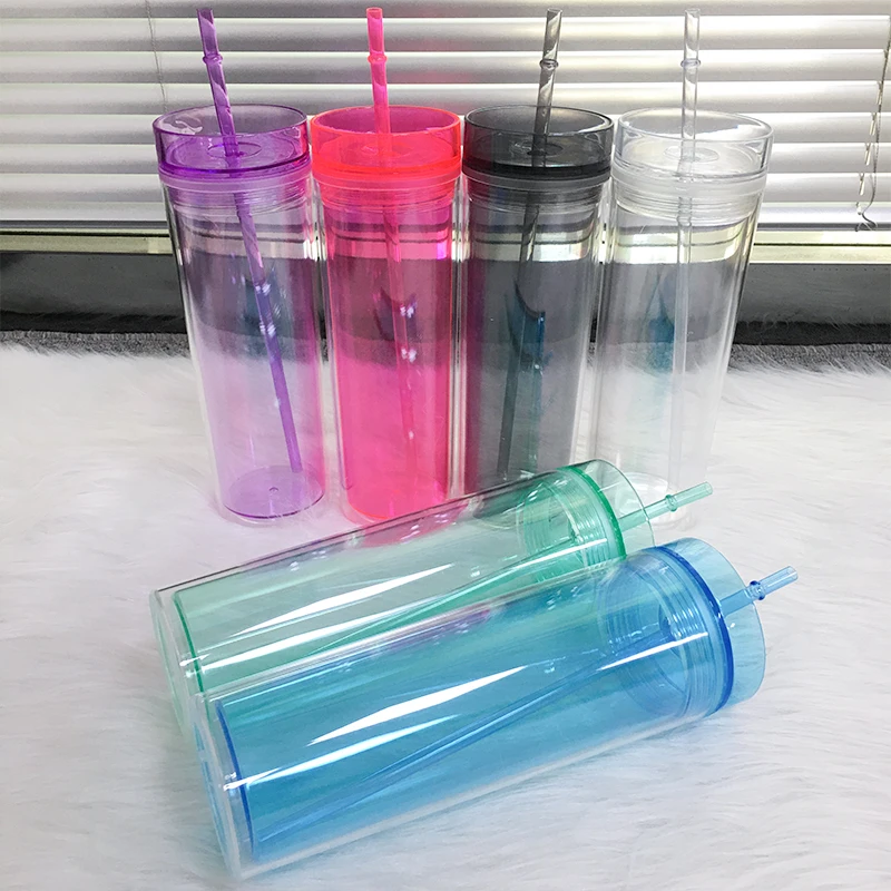 Большая емкость акриловая тонкая кружка 22 унции прозрачная бутылка для воды кофе с двойными стенками и соломинкой пластиковая дорожная чашка