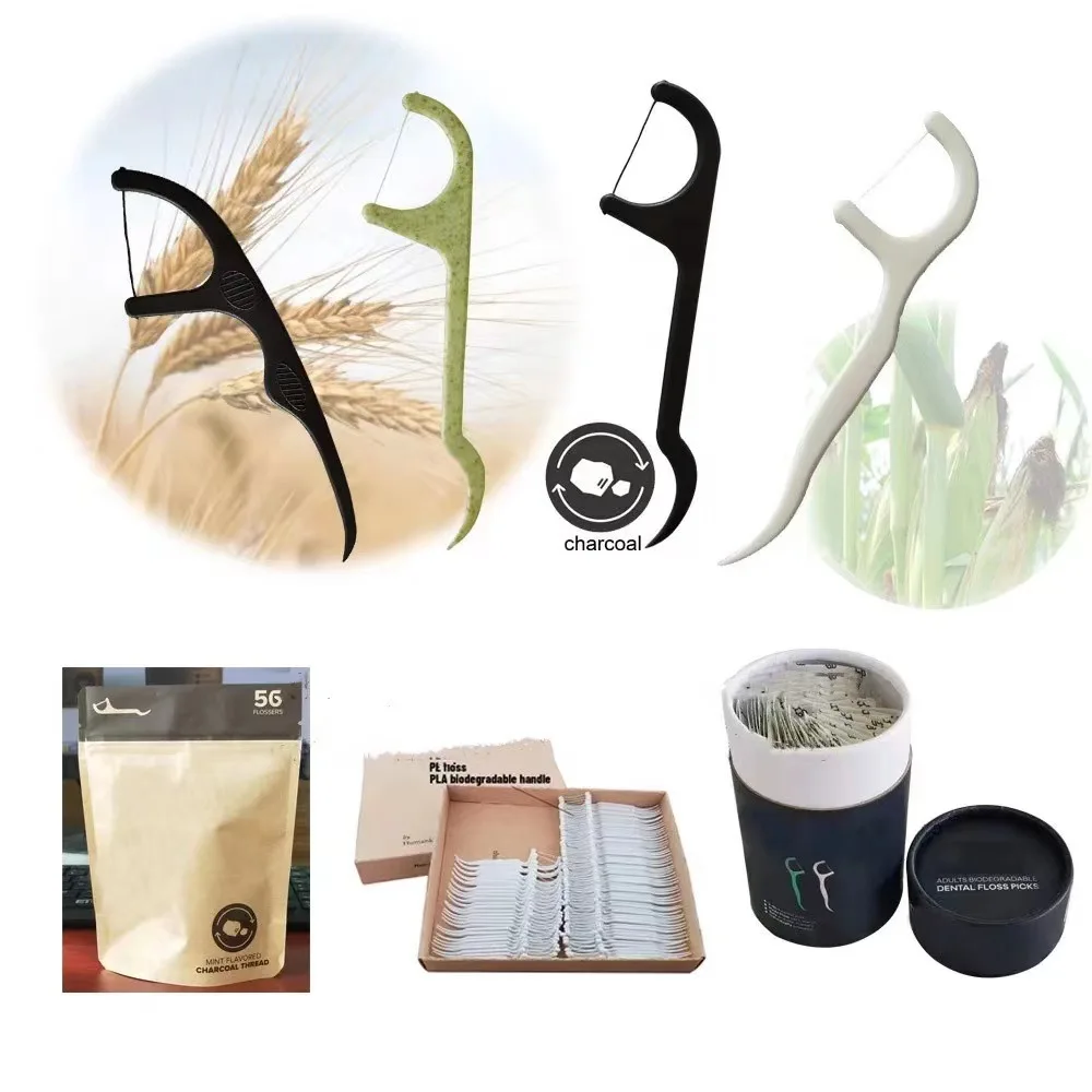 Ультра-тонкие и гладкие биоразлагаемые зубные флоссы для очистки полости рта бамбуковые угольные нитки одноразовые