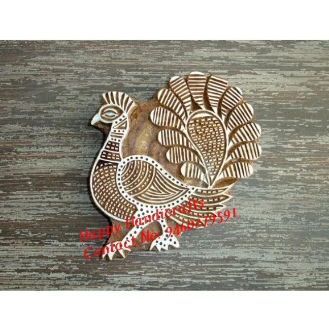 Штамп «Павлин»: деревянный индийский Печатный блок ручной работы