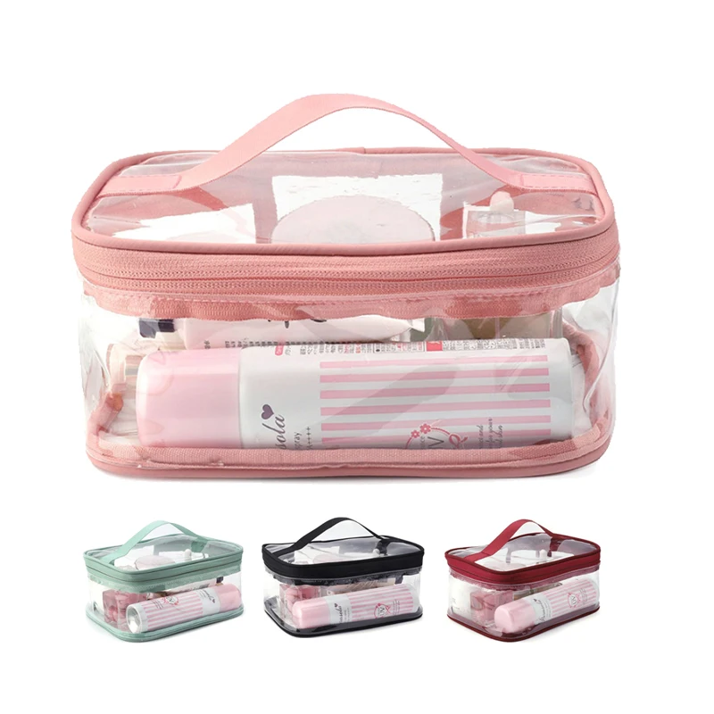 Пользовательский прозрачный косметический чехол на молнии Макияж сумка ПВХ водонепроницаемый розовый мешок с ручкой 157,91-526,34 ₽