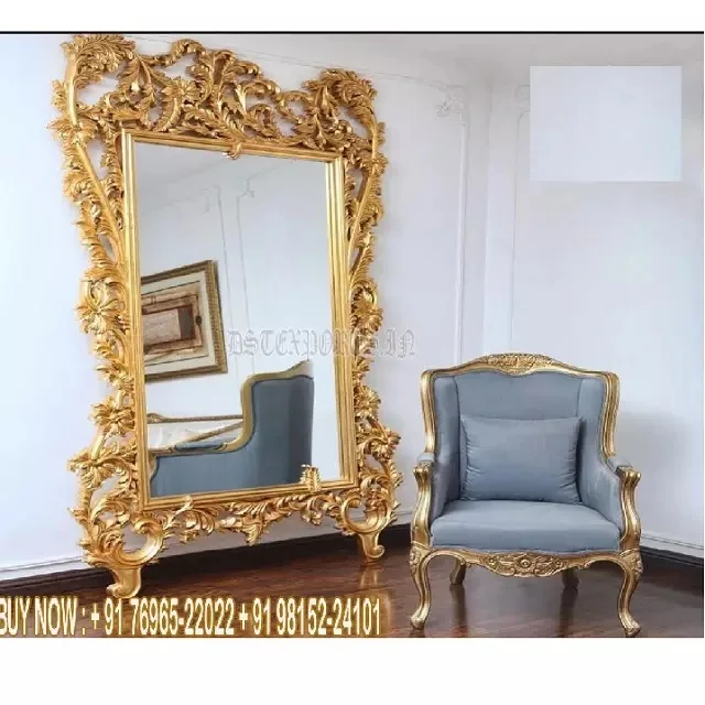 Дизайнерская зеркальная оправа из тикового дерева премиум-класса для дома Золотая Королевского резная вручную деревянная