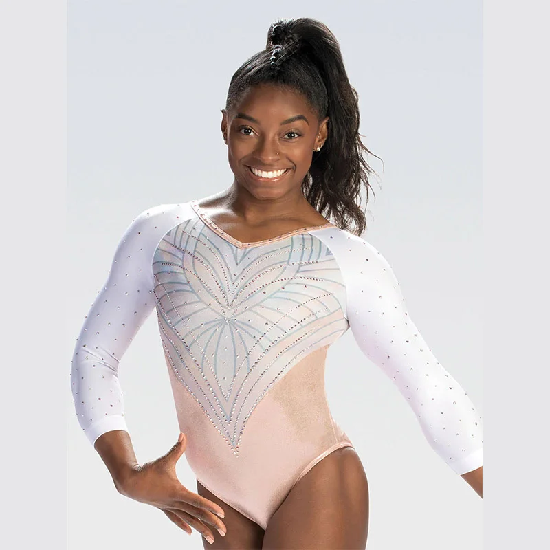 Женская гимнастическая одежда со стразами и длинным рукавом