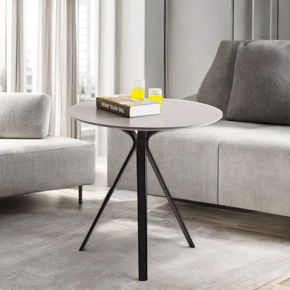 Светло-серая круглая столешница для выпечки с итальянскими черными металлическими ножками приема стол обсуждения и суждения