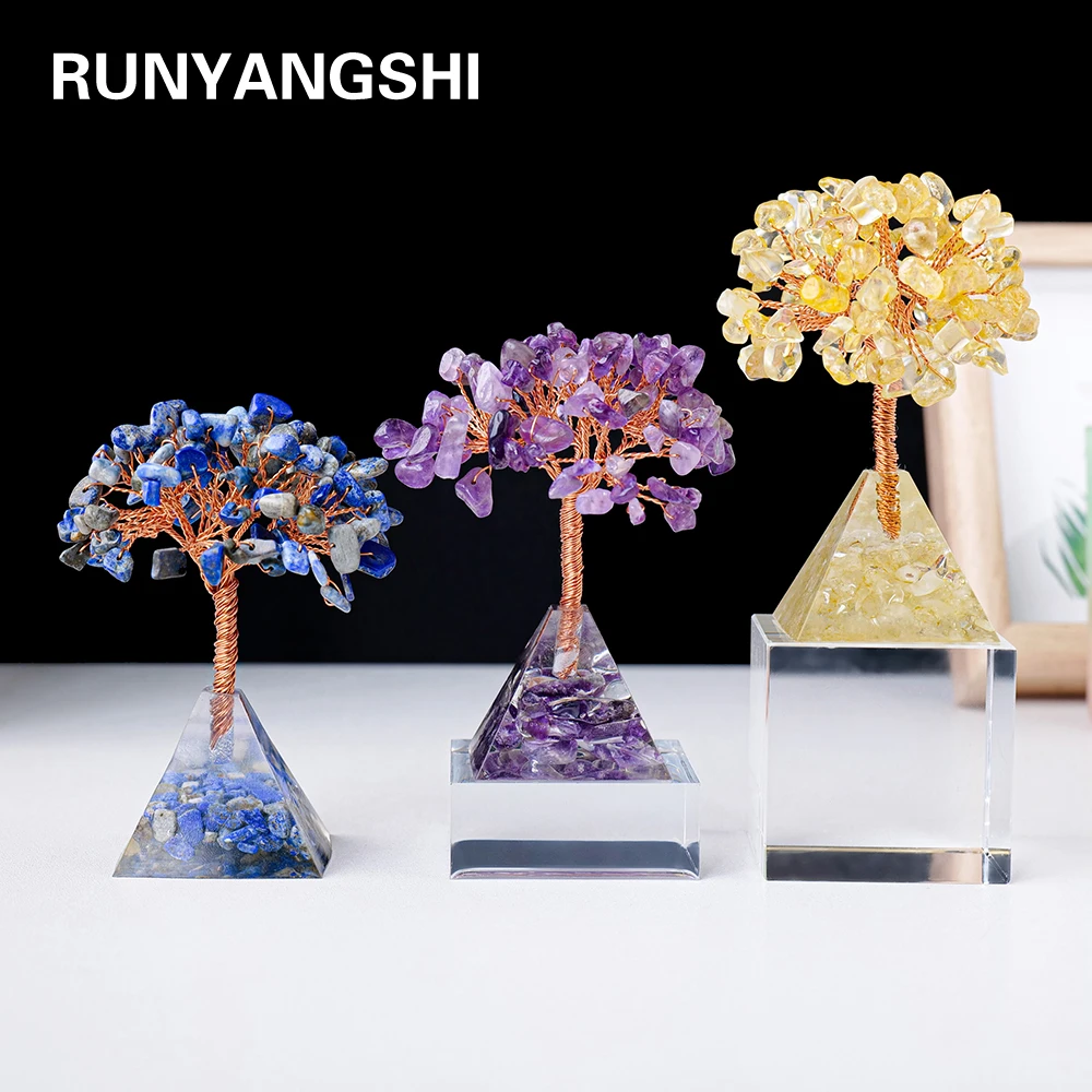 Оптовая продажа натуральный энергетический кристаллический камень драгоценный пирамидальный базовый чип хрустальный дерево жизни украшение дома