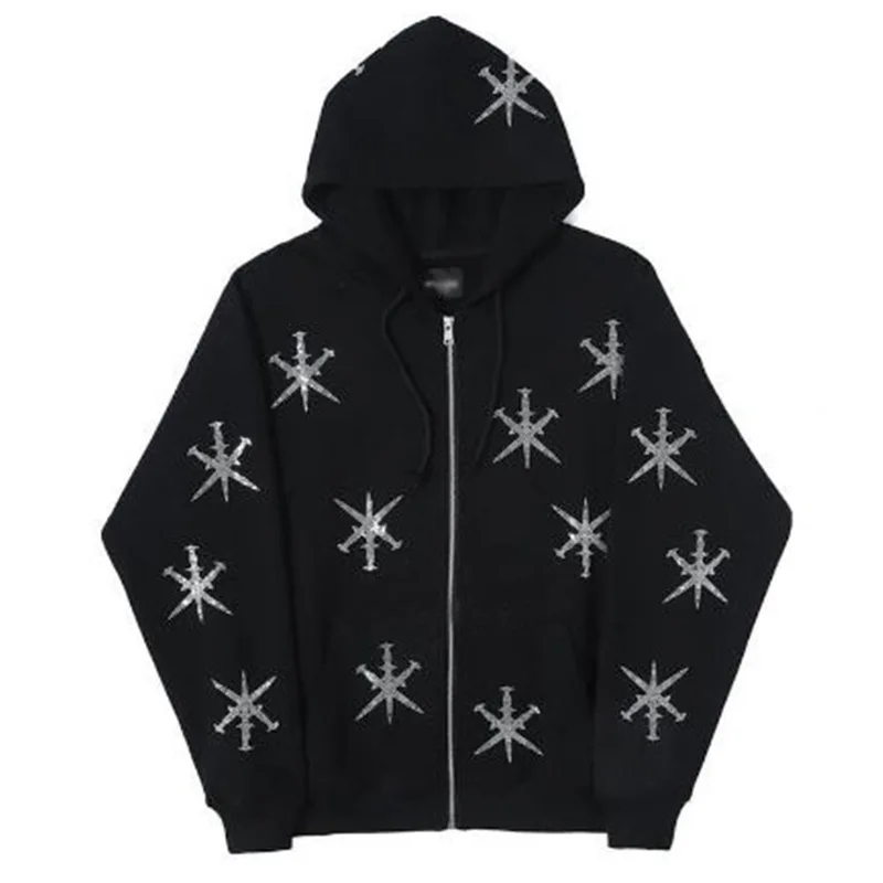 Пуловер унисекс на молнии со стразами