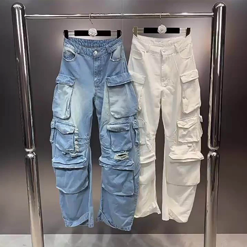 Женские прямые широкие джинсовые брюки с высокой талией высококачественные женские черные мешковатые джинсы-карго несколькими карманами 1 168,24-1 382,81 ₽