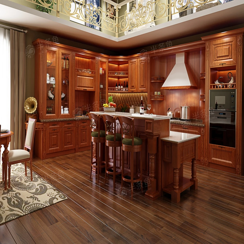 Домашний кухонный 2023 простой дизайн орех модульный деревянный шпон кухонные шкафы мусорное ведро встроенный с островным набором