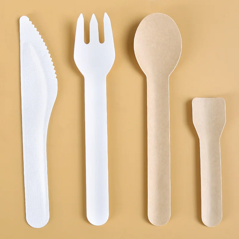 Одноразовые экологически чистые бумажные ложки для мороженого столовые приборы индивидуально бумажный нож вилка ложка и салфетка бумажное ремесло