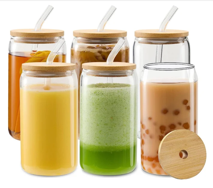 Custom logo 12oz 16oz Beer soda shaped sublimation Glass can with Bamboo Lid and plastic Straws | ||||||||