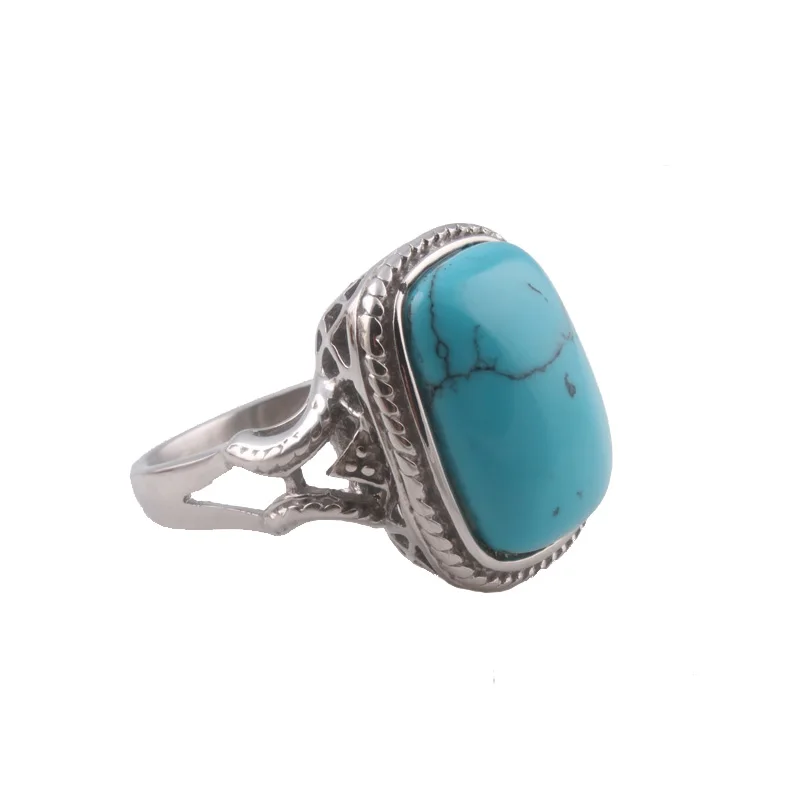Оптовая продажа винтажное кольцо из нержавеющей стали с голубым бирюзовым камнем