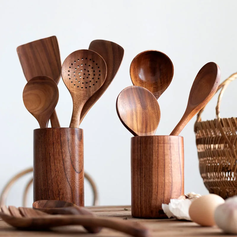 Жаворонках Лидер продаж из тикового дерева деревянная лопатка 7 штук кухонная утварь комплекты деревянный антипригарные противни для дома сковорода выпечная прокладка салфетка инструментов