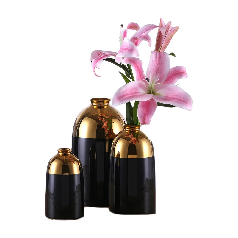 Креативная керамическая ваза с черным золотым покрытием роскошные современные светлые вазы для цветочной композиции аксессуары домашнего декора