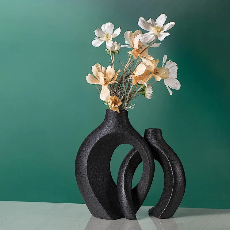 2024 Лидер продаж винтажный декор для гостиной дома современные вазы черная керамическая ваза цветов набор