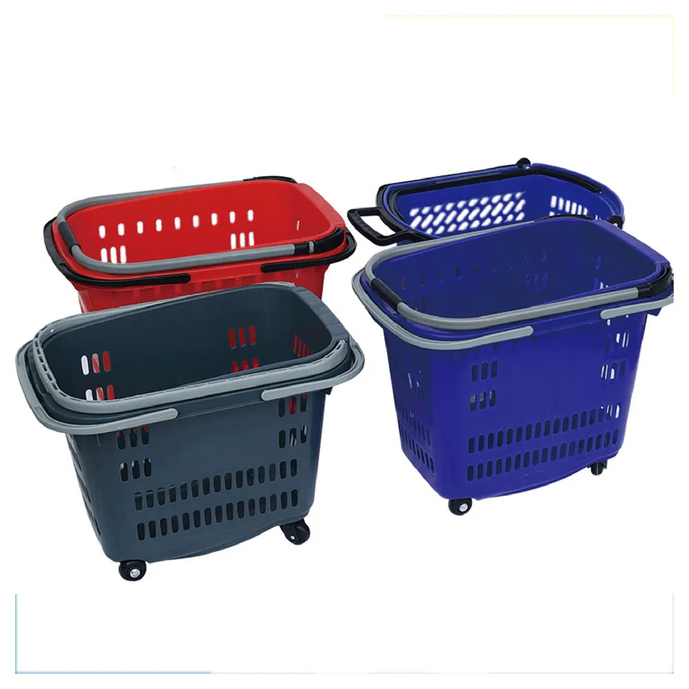Оптовая продажа пластиковая корзина для покупок с катящимися колесами продуктового розничного супермаркета логотипом OEM 540,98 ₽ - 761,79 ₽