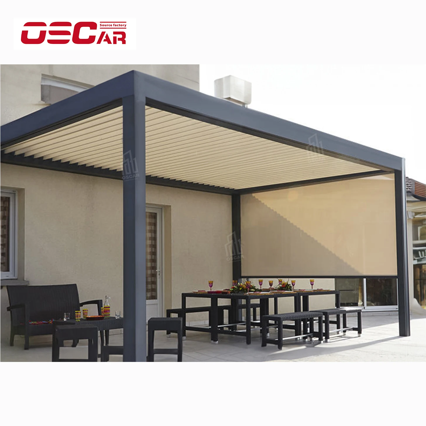 Водонепроницаемая наружная терраса алюминиевый павильон с регулируемыми жалюзи порошковым покрытием Рама из сплава дистанционным управлением садовый