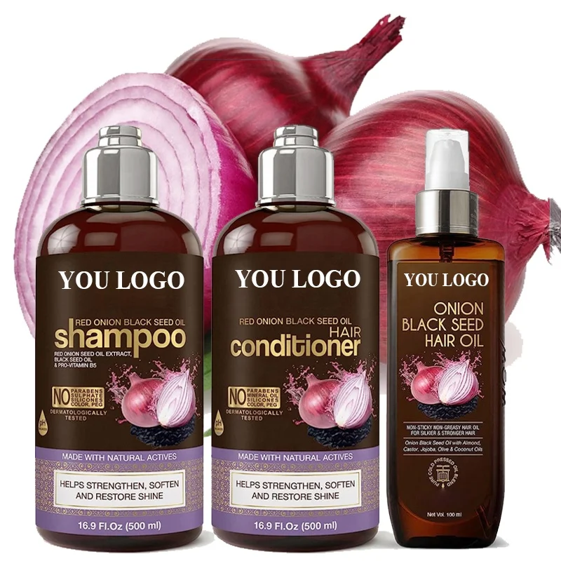 Оптовая продажа органический красный лук Масло черного семени шампунь и кондиционер с розмарином для роста волос питание от потери