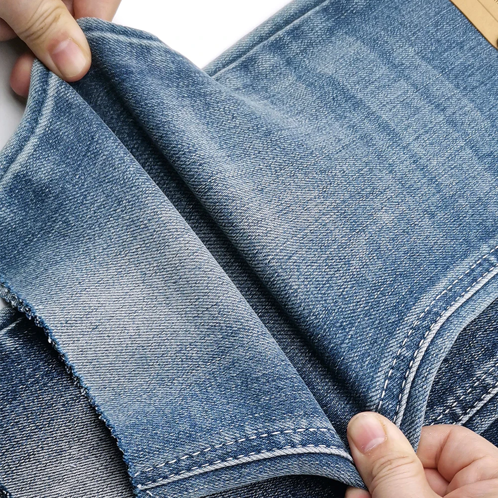12 7 унций Тяжелая двойная пряжа эластичная Высококачественная бамбуковая хлопковая спандекс синяя джинсовая ткань 350,47-374,64 ₽