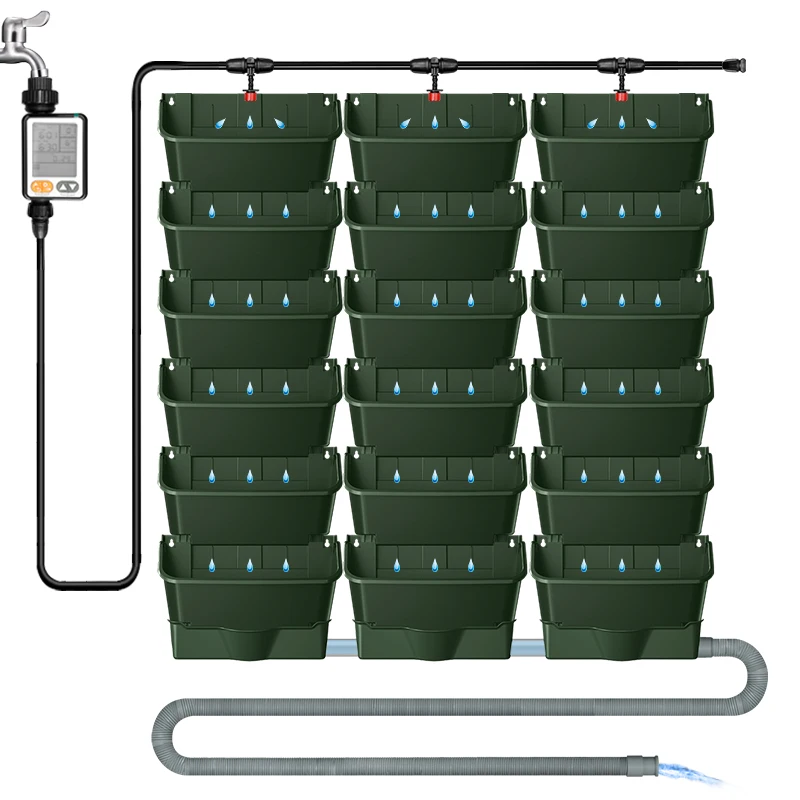 Крытый Открытый Большой Вместительный вертикальный подвесной с системой капельного орошения дренажным лотком настенный пластиковый цветочный горшок