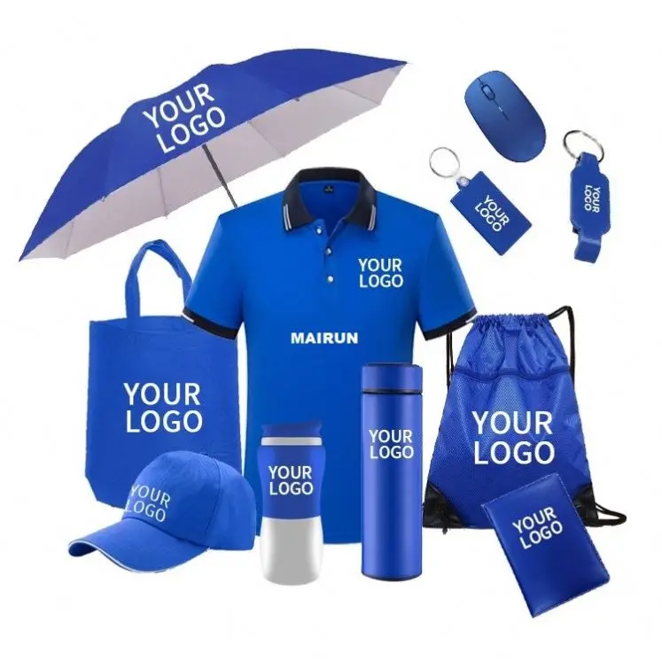 Подарочный Набор для 2024 сотрудников с логотипом на заказ бутылка воды футболка рюкзак кепки зонтик корпоративные Товары офиса