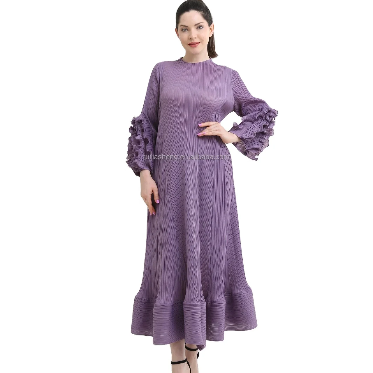 Плиссированное повседневное фиолетовое платье с длинными рукавами и пуговицами плиссированное большого размера в богемном стиле плиссированной юбкой Miyake