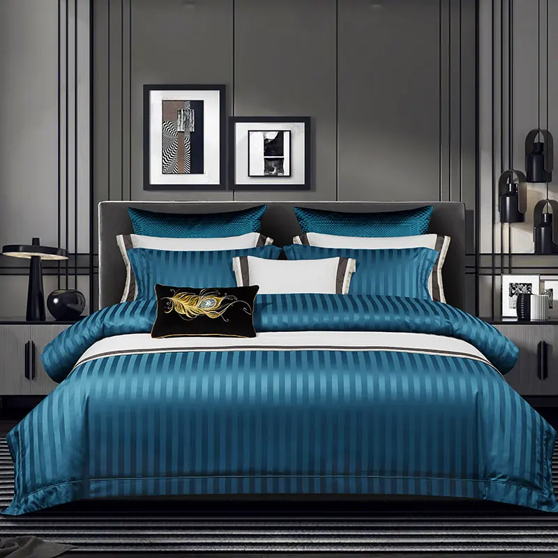 Оптовая продажа роскошного Дубая постельное белье для пятизвездочных отелей Египетский хлопок сатиновый пододеяльник в полоску полный размер Комплект постельного белья/