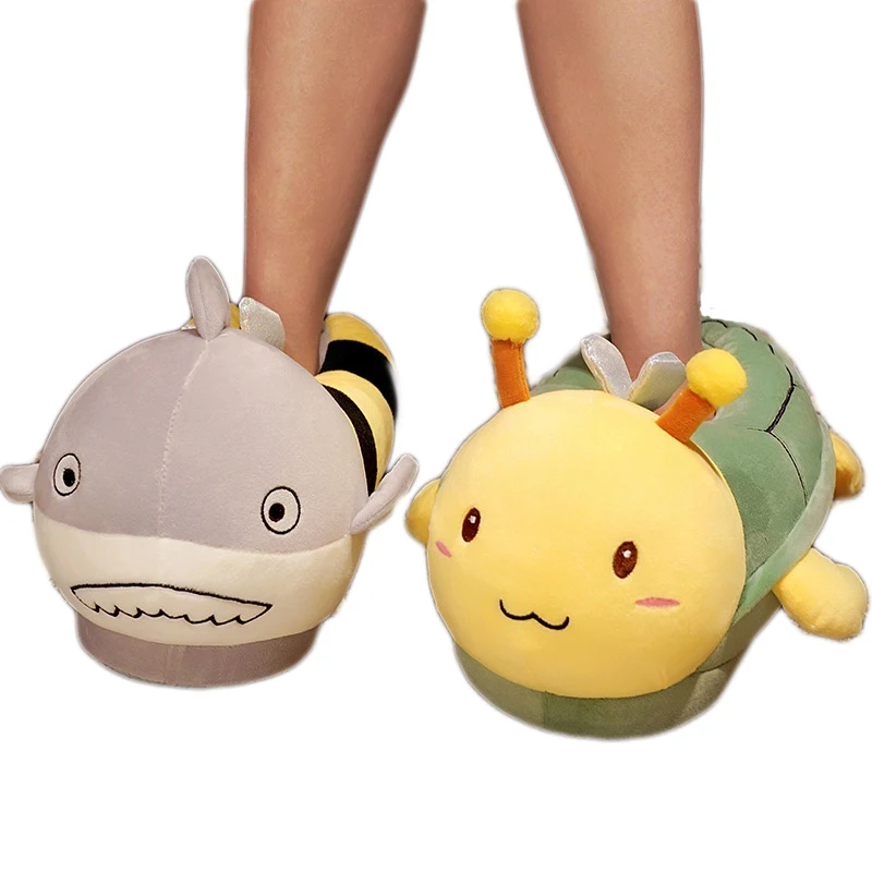 Забавные зимние теплые плюшевые тапочки в виде акулы женские домашние пчелы животных с нескользящей подошвой 426,16 ₽ - 504,55 ₽