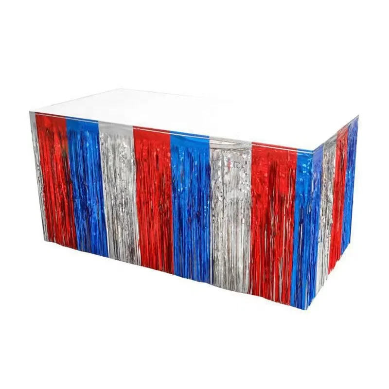 Новейшая красная серебристо-синяя патриотическая металлическая фольга с бахромой День Независимости юбки для стола 4-й из July Streamer