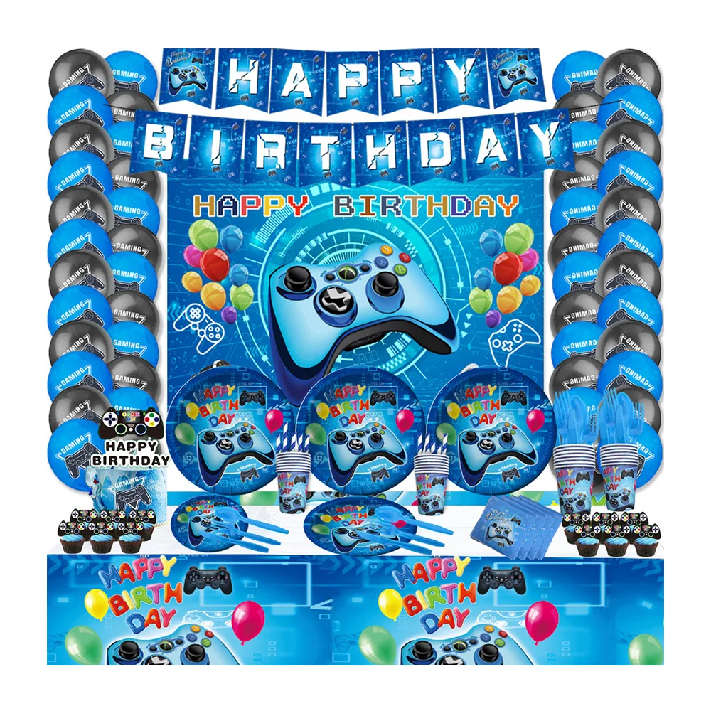 Синяя игра украшение для дня рождения мальчика посуда бумажная тарелка набор бумажных стаканчиков салфеток праздничные принадлежности детские игровые ручки