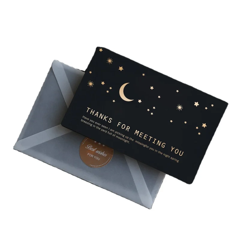 Лидер продаж роскошные поздравительные открытки из черной золотой фольги с принтом надписью «Thank You» конвертом и наклейками для бизнеса