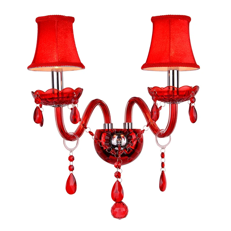 Роскошный современный настенный светильник из красного стекла металла хрусталя художественный внутренний декор для отеля дома свадьбы банкета зала Внутренний двойной