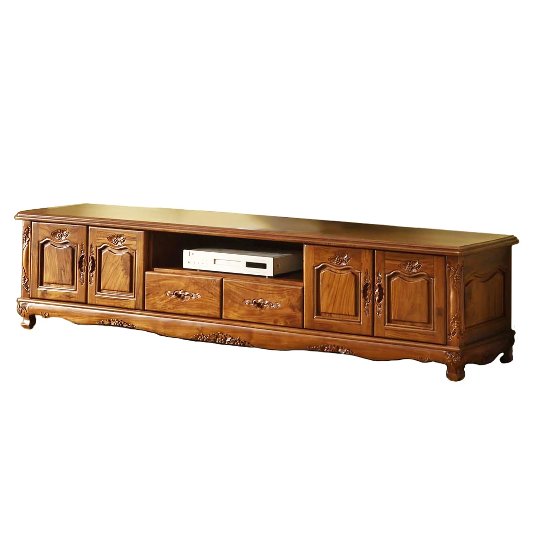 Роскошный Романтический резной ТВ-шкаф ручной работы из тикового дерева с 4 дверями и 2 ящиками резьбой по винограду для гостиной 37 628,81 ₽ - 39 538,33 ₽