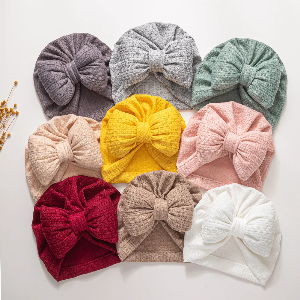 Name | Factory Soft Stripe Design Baby Knitted Hat Wholesale Fancy Girls Bow Turban Hats for Newborn |
