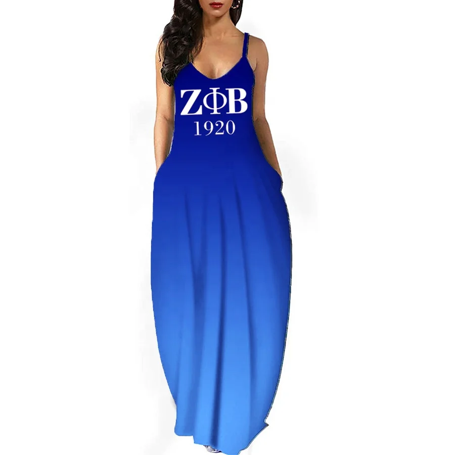 Zeta Phi синее платье с бретельками для городского отдыха модное женское принтом длинная юбка из молочного шелка без рукавов 1920 V-образным вырезом 640,35 ₽ - 1 081,96 ₽