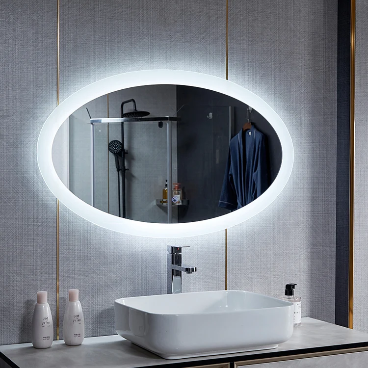 Современное квадратное осветленное зеркало для макияжа, настенный Встроенный интеллектуальный сенсорный экран для ванной комнаты высокой четкости, Овальный