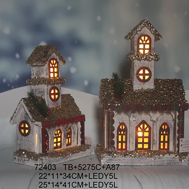 SOTE F16 миниатюрные рождественские деревенские домики со светодиодной подсветкой маленький золотой картон Рождественский домик с украшение для елки