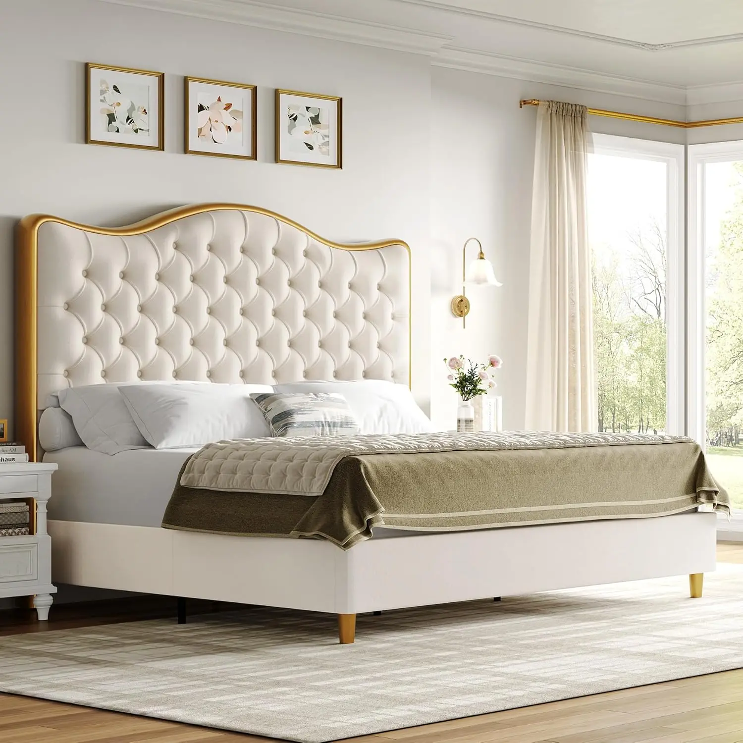 Китайская Роскошная современная деревянная кремовая кровать в стиле принцессы Главная спальня двуспальная мягкая Свадебная отделка