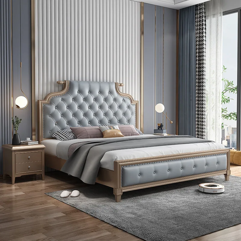 Роскошная современная европейская мебель для спальни из массива дерева двуспальная кровать размера «Queen-Size» стеганая антикварная гостиничная мягкая кожа хранения
